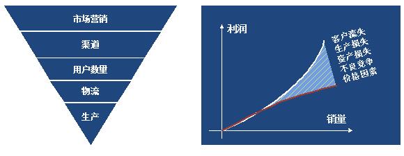 企業(yè)在營銷和渠道建設(shè)方面投入了大量人力、物力、財力。而隨著產(chǎn)銷量的增長,單桶 水產(chǎn)品盈利下降,綜合利潤增長不對稱。用戶與水企脫節(jié),用戶層面與水企基本沒有互動和反饋。水企提升盈利的原動力不足。