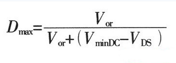 1、MOSFET開關(guān)管工作的最大占空比Dmax如上式:Vor為副邊折射到原邊的反射電壓,當(dāng)輸入為AC220V時反射電壓為135V,VminDC為整流后的最低直流電壓,VDS為MOSFET功率管導(dǎo)通時D與S極間電壓,一般取10V。