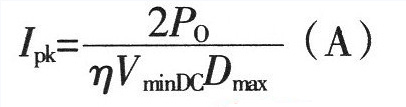 2、變壓器原邊繞組電流峰值IPK如上式:η為變壓器的轉(zhuǎn)換效率,Po為輸出額定功率,單位為W。