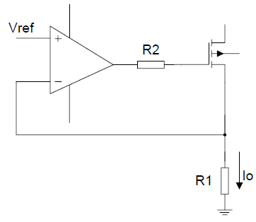 電路4:使用運(yùn)放組成的恒流源,Io=Vref/R1。
